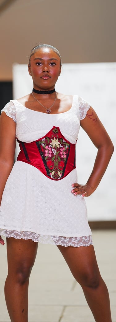 The dramatic, visually dramatic qualities of Baroque and Renaissance paintings were a significant source of inspiration for this collection. Additionally, I admired the Romanticism prominent in this artistic era, particularly the use of deep, saturated colors to convey complex feelings. By using dark florals and feminine silhouettes as an outlet, these looks convey the intricacy of feminine rage, and a compelling beauty in the darkness.